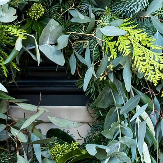 Wreath infused with classic Christmas scents to bring warm, festive spirit to your door, A beautifully blended mixture of seasonal foliage's.